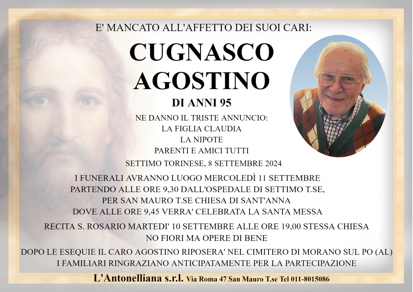 Lascia gratuitamente un messaggio di cordoglio, sarà nostra cura consegnarlo ai congiunti di Agostino Cugnasco.